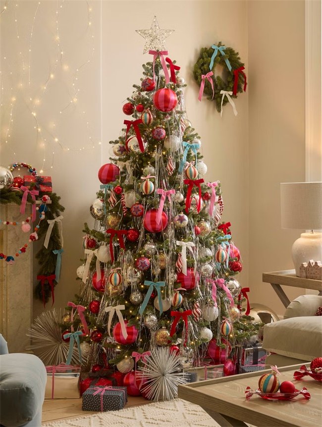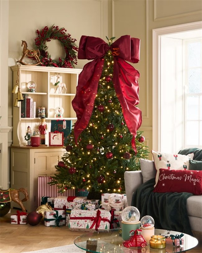Bows are quickly becoming a timeless favorite in Christmas decorations, adding an instant touch of elegance and sophistication to holiday settings. This year, striped bows have garnered extra attention, and oversized designs are being used as eye-catching tree toppers — following the principle of “the bigger, the better” to easily create a visual highlight. With countless styles and colors to choose from, bows and ribbons continue to lead the most versatile trend of the season.
